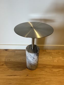 CUFFLINK WHITE & SILVER SIDE TABLE — CB2$500West Hollywood, CA