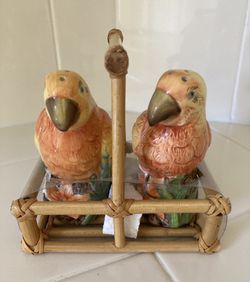 NEW Parrot Salt and Pepper Shakers with Bamboo basket$15Murrieta, CA