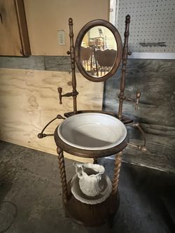 Vintage Victorian Walnut Wood Wash Basin Stand with Mirror$125Seattle, WA