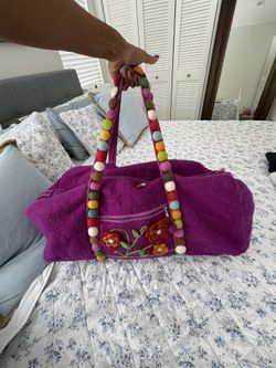 Handmade Nepal purple felted wool bag with pom poms and flower embroidery$55Miami, FL