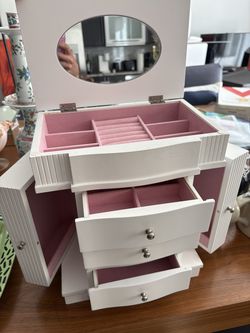 Large White Wood Jewelry Box Armoire 2 Door 4 Drawer Top Lifts to Mirror$25Miami, FL