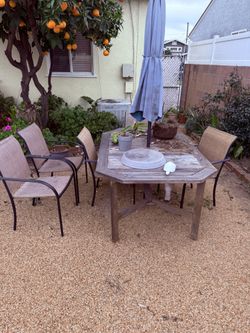 Outdoor Wood Patio Table w/ Umbrella & 4 Chairs$50Long Beach, CA