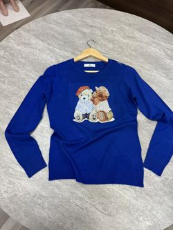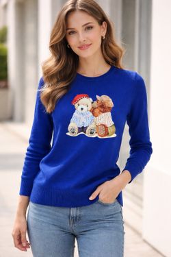 Women’s Royal Blue Knit Sweater with Teddy Bear Rhinestone Detail$19City Of Industry, CA