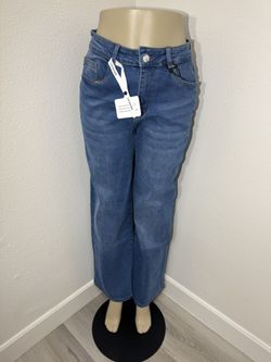 Women’s Blue High Rise Straight Leg Jeans Rhinestone Side Detail Denim Pants$36City Of Industry, CA