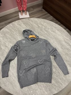 Women’s Gray Hooded Knit 100% Cashmere Sweater with Rhinestone Heart Design$21City Of Industry, CA