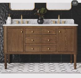 #26 Collette 60 in W x 22 in D & 35 in H Double Sink Bath Vanity in Cinnamon Oak With White Carrara Marble Top$899Tujunga, CA