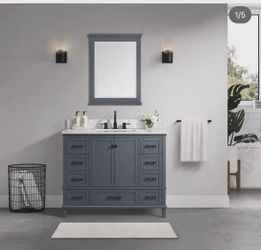 #24 Merryfield 43 in. Single Sink Freestanding Dark Blue-Grey Bath Vanity with White Carrara Marble Top (Assembled)$750Tujunga, CA