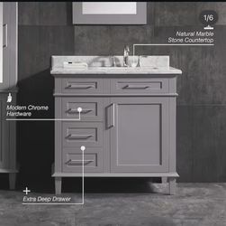#23 Sonoma 36 in. Single Sink Pebble Gray Bath Vanity with Carrara Marble Top (Assembled)$450Tujunga, CA