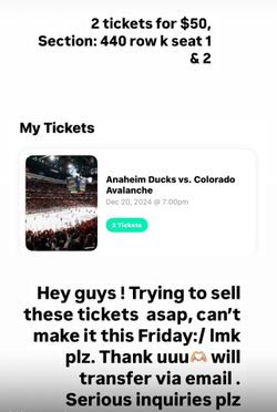 Anaheim Ducks Vs Colorado Avalanche $40Moreno Valley, CA