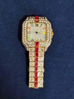 Men’s Diamond / Moissanite Watch W/ Rainbow Dial Iced Out Gold/Red Band Watch $85Buena Park, CA