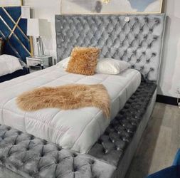 Furniture. Grey Velvet Queen Bed. Storage. Speakers$0Orlando, FL