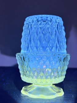 Clear Indiana Glass Co Diamond Point Fairy Lamp UV reactive Glows Blue And Green 4x5.5β$235Maryville, TN