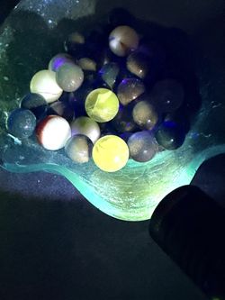 EXTREME GLOW! Marbles Collection Some UV Reactive, In UV Reactive Aqua Crackle Ruffle Bowl. $65Maryville, TN
