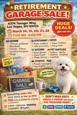 🎉 RETIREMENT GARAGE SALE – HUGE DEALS! 🎉$0Las Vegas, NV