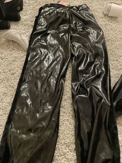 Black faux fur wet look contrast fabric$10Glendale, CA