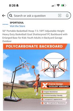 50" Portable Basketball Hoop 7.5-10FT Adjustable Height Heavy Duty $300Ontario, CA