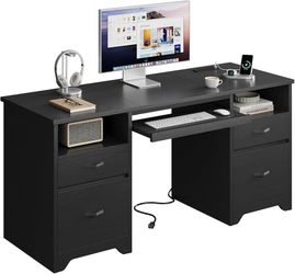 Bestier 59” Computer Desk with 4 Drawers, Office Desk with Storage, Modern Executive Desk with Charging Station, Keyboard Tray & Wooden Pedestals on B$150El Monte, CA