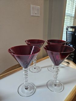 VTG Imperial Martini Glass Ruby Red Cristal Set Of 4 $40Wht Settlemt, TX