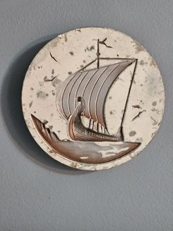 Vintage Midcentury Chalk Pirste Ship Wall Hanging $15Lowell, AR
