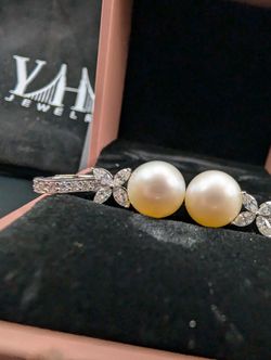 Natural Pearl + Moissanite Flower Marquise Cut Silver Dangle Earrings$359San Francisco, California