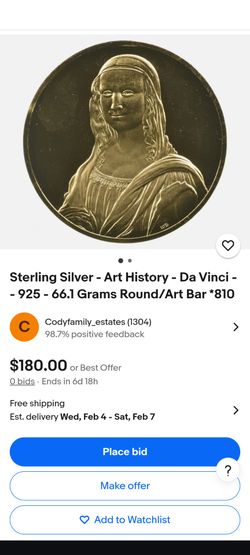 Sterling Silver Art 🎨🎭 History -Da Vinci's Mona Lisa 925 66.1 Grams Round/Art Bar $350Boston, MA