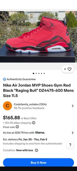 Nike Air Jordan MVP Shoes Gym Red 🍒 Black "Raging Bull" DZ4475-600 Mens Sz.11.5 $200Boston, MA