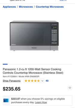 Panasonic Microwave The Genius Sensor 1200 W$90Tipton, CA