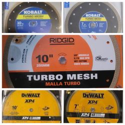 Diamond grit tile saw blades - Ridgid Turbo mesh + Kobalt Turbo Mesh + Dewalt Xp4$1Tacoma, WA