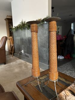 Pair of Mid-Century Wicker & Metal Taper Candle Holders – Rustic Boho Style$30Waukesha, WI