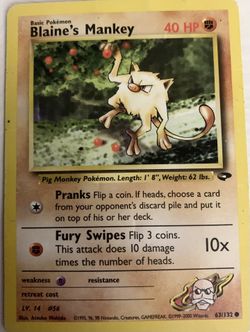 Blaine’s Mankey Pokemon Trading Card 1995$20Mount Joy, PA