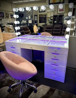 Glam Vanity 13 Drawers with Interior Lights, LED - Mirrored & 2 Shelfs (Included Chair) $1,190Las Vegas, NV