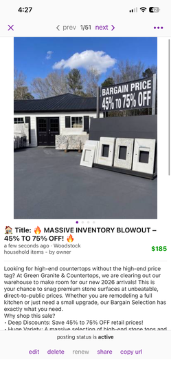 π Title: π₯ MASSIVE INVENTORY BLOWOUT β 45% TO 75% OFF! π₯$185Woodstock, GA