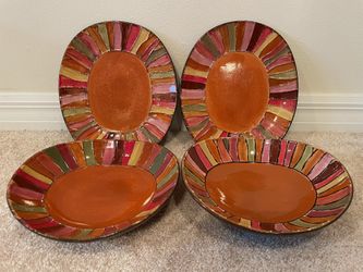2 Pier 1 Wavy Strip Stoneware Handpainted Plates 10" & 2 9” Handpainted Bowls$25Ind Hbr Bch, FL