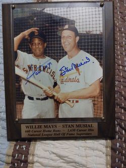 Willie Mays & Stan Musial 8"x10" Signed Photo On A 10 1/2" X 13" Plaque Honoring The Hall Of Famers.$400Turlock, CA