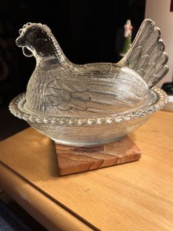Vintage Indiana Glass Clear Hen on Nest Covered Dish Small Chips In Crest. $25Buffalo, NY