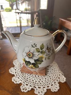 Gibsons Staffordshire England Teapot White w/White Blossoms Gold Trim Perfect$25Buffalo, NY