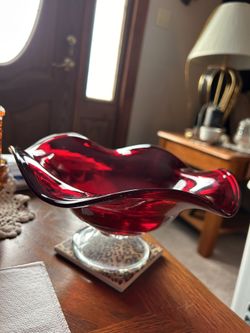 Ruby Red Glass Footed Pedestal Ruffled Edge Bowl$23Buffalo, NY