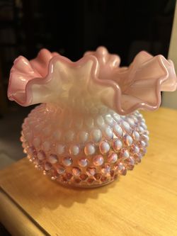 Vintage Fenton Glass Cranberry Pink White Opalescent Hobnail Ruffled Vase$35Buffalo, NY