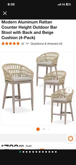 Modern Aluminum Rattan Counter Height Outdoor Bar Stool with Back and Beige Cushion (4-Pack)$299Bakersfield, CA