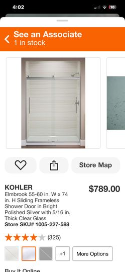 KOHLER Elmbrook 55-60 in. W x 74 in. H Sliding Frameless Shower Door in Bright Polished Silver with 5/16 in. Thick Clear Glass$250Bakersfield, CA