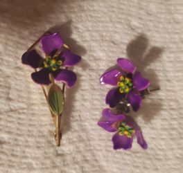 Vintage Metal Purple Flowered Enamel Brooch & Earrings$60Indio, CA
