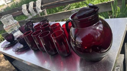 Vintage Red anchor Hocking Glass Set$60Squaw Valley, CA