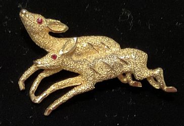 BSK Running Deer Pin. Brushed Gold tone With Red Stone Eyes$22Ind Crk Vlg, FL