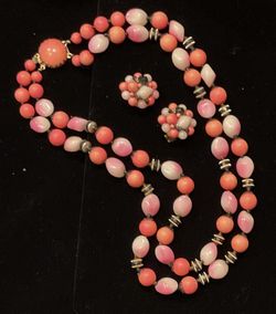 Necklace & Earrings Set, 10” Long, Double Strand, 1950’s Hong Kong $45Miami Beach, FL