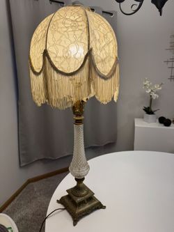 Vintage Table Lamp with Glass Column & Fringe Shade – Working$100Buffalo Grove, IL