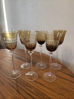Antique vintage amber long stem goblet set of six$90San Diego, CA