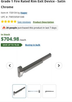 grade 1 fire rated rim exit device - satin chrome$175Buffalo, NY