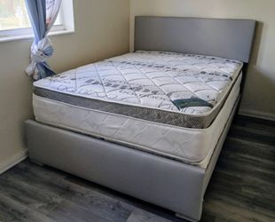$450 Gray Queen Bed Frame With Mattress And Box Spring Brand New Free Delivery Free Assembly $450Miramar, FL
