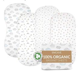 100% Organic Cotton Bassinet Sheets (4 Pack) - Ideal for Uppababy Bassinet Mattress - GOTS Certified - for Standard Oval & Rectangular Mattress - Perc$25Miami Beach, FL
