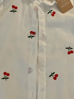 White And Red Cherries Puffy Arms Shirt Small Women$5Aventura, FL